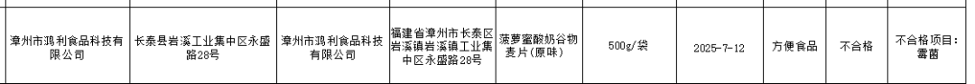 龙海这三家企业出产的食物抽检不及格!